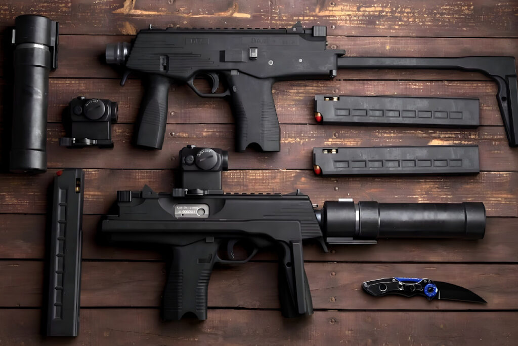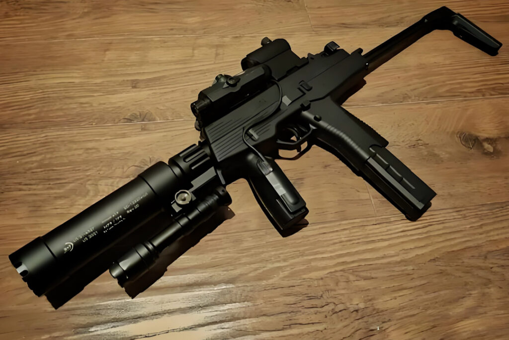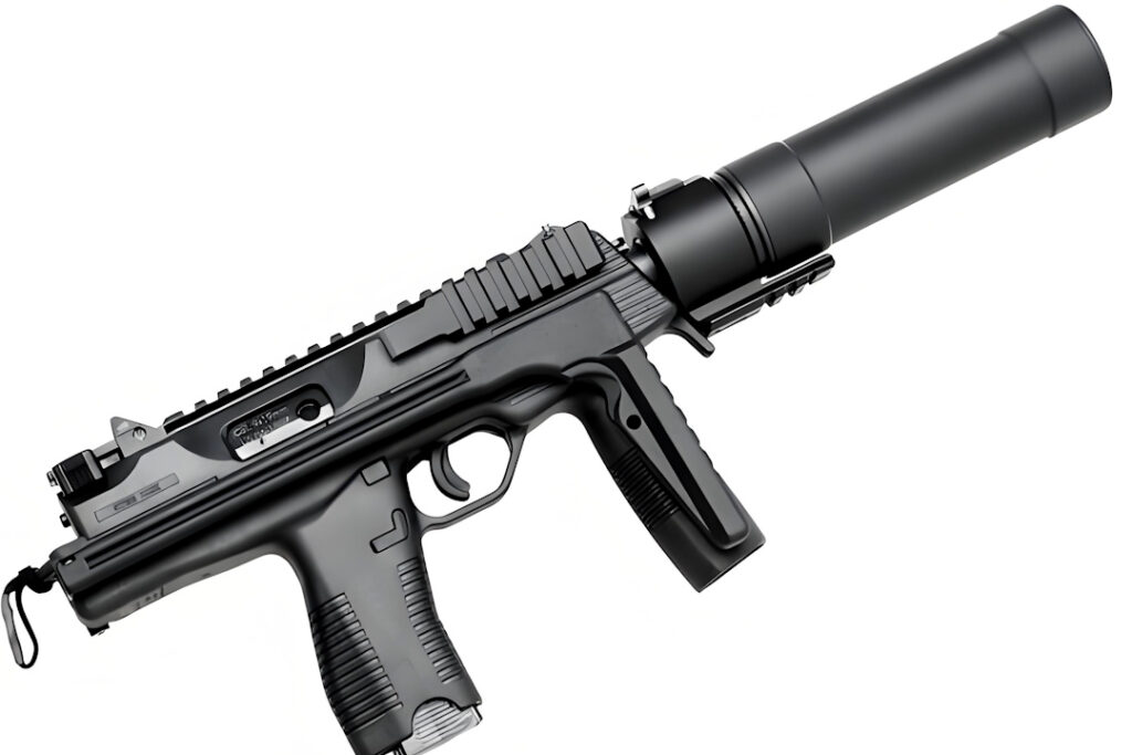 After four years of development, the MP9 debuted in 2004. Its “MP” designation signifies both “Machine Pistol” and “Modular Platform.” The improved dual-recoil-spring system reduced malfunction rates from 1/850 (TMP) to 1/5000.